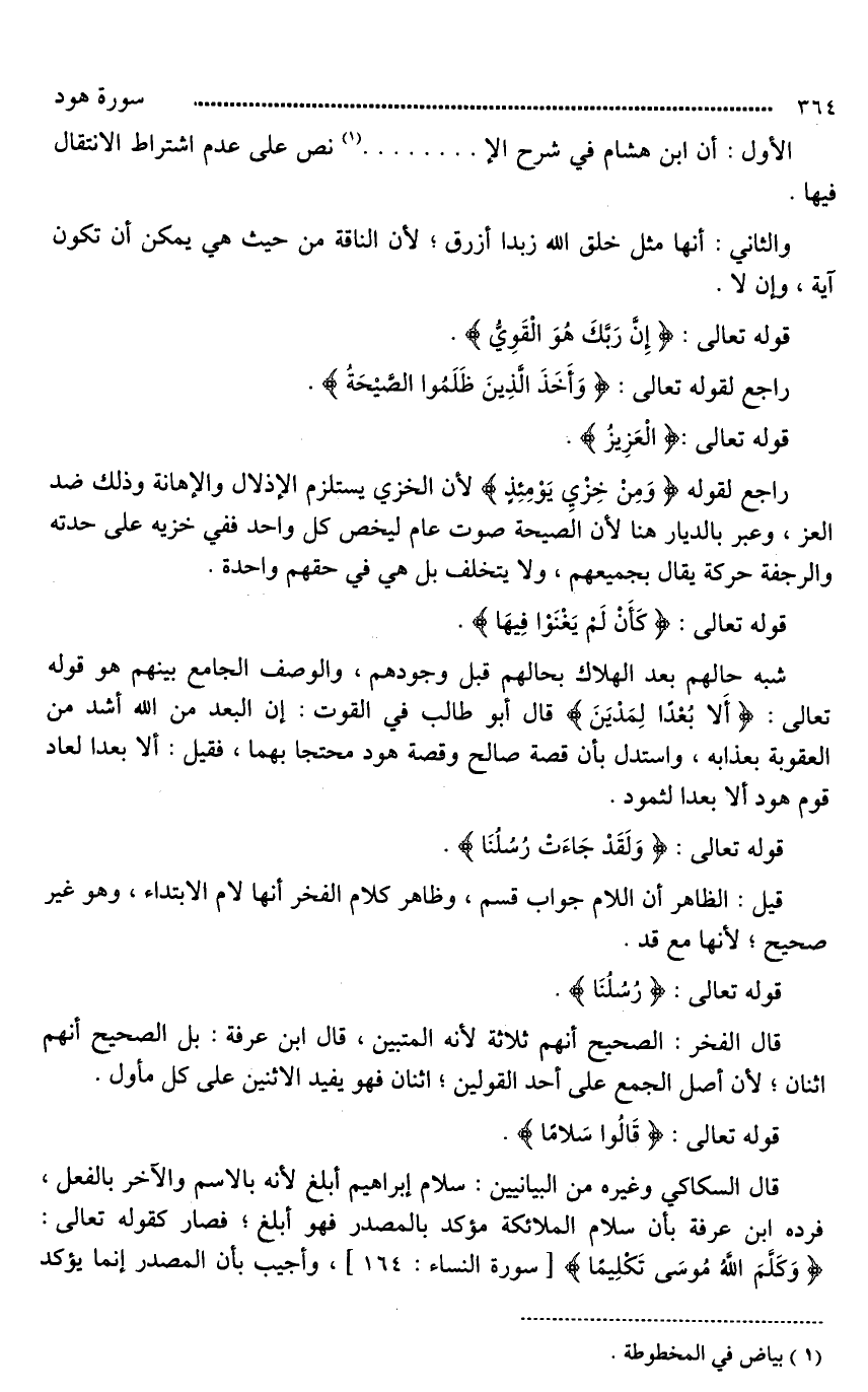 الأول: أن ابن هشام في شرح [الإيضاح*]. نص على عدم اشتراط الانتقال فيها.
