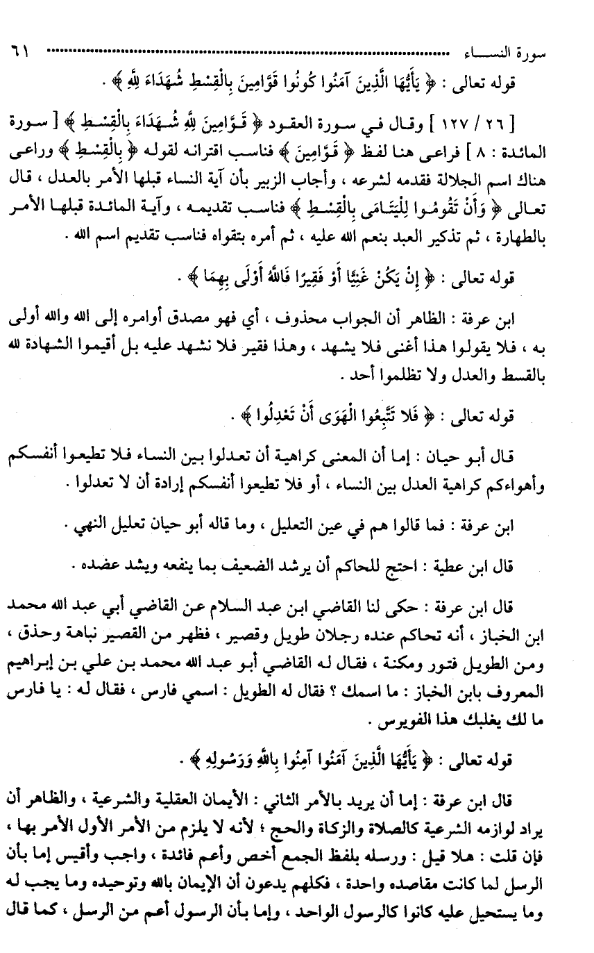 قوله تعالى: {يَا أَيُّهَا الَّذِينَ آمَنُوا كُونُوا قَوَّامِينَ بِالْقِسْطِ شُهَدَاءَ لِلَّهِ ... (135)}