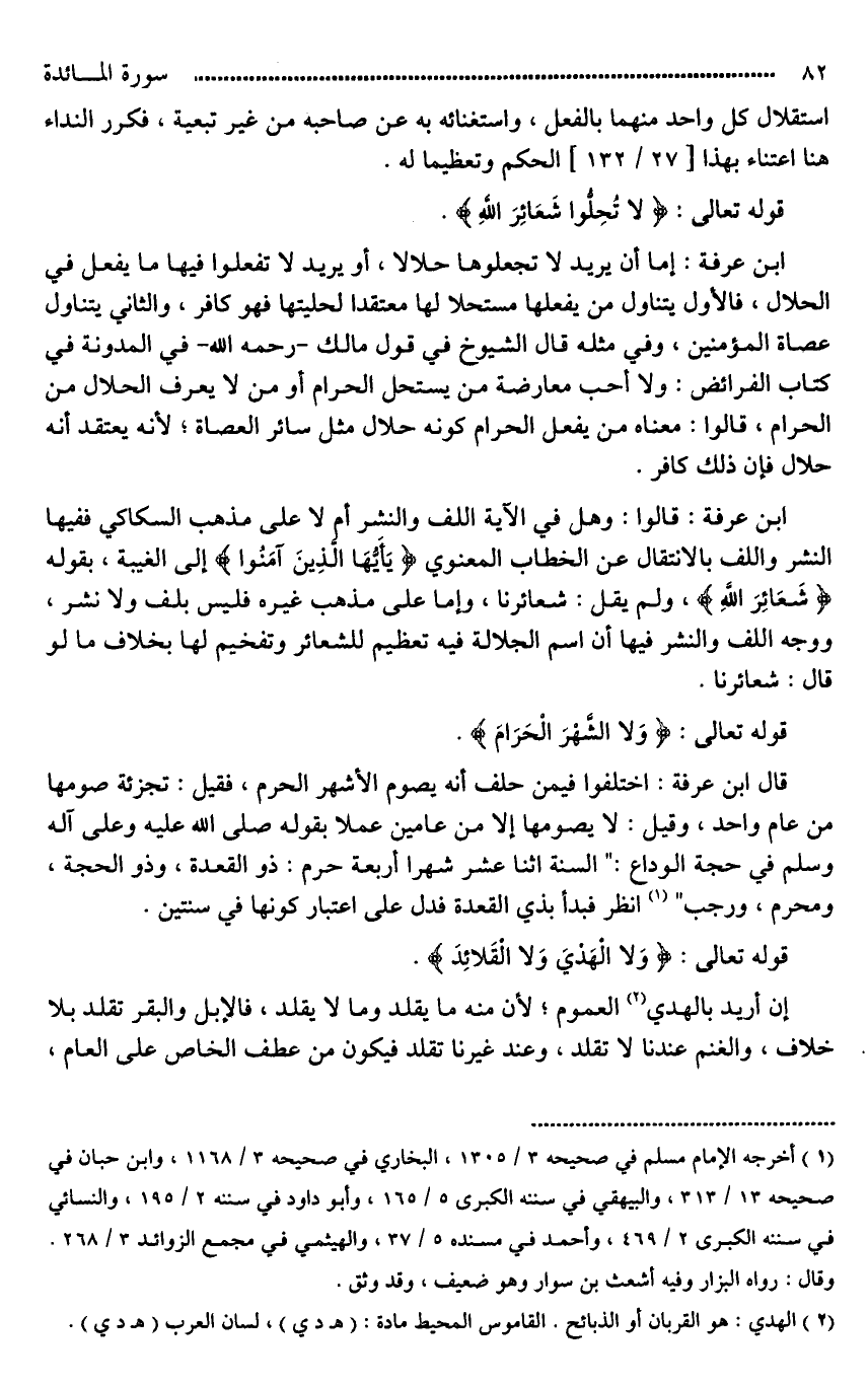 قوله تعالى: (وَلَا الْهَدْيَ وَلَا الْقَلَائِدَ).
