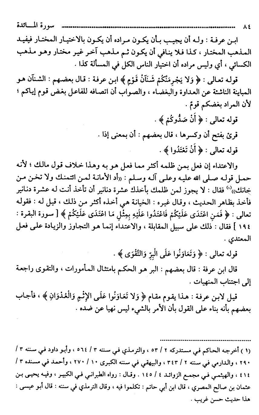 قيل لابن عرفة: هذا يقوم مقام (وَلَا تَعَاوَنُوا عَلَى الْإِثْمِ وَالْعُدْوَانِ)، فأجاب بعضهم بأنه بناء على القول بأن الأمر بالشيء ليس نهيا عن ضده.