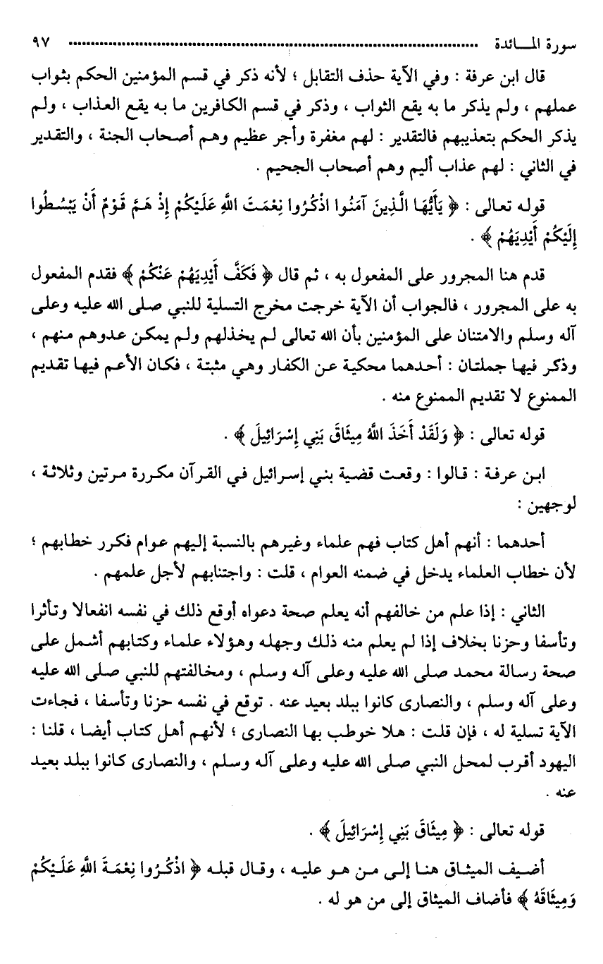 ابن عرفة: قالوا: وقعت قضية بني إسرائيل في القرآن مكررة مرتين وثلاثة، لوجهين: