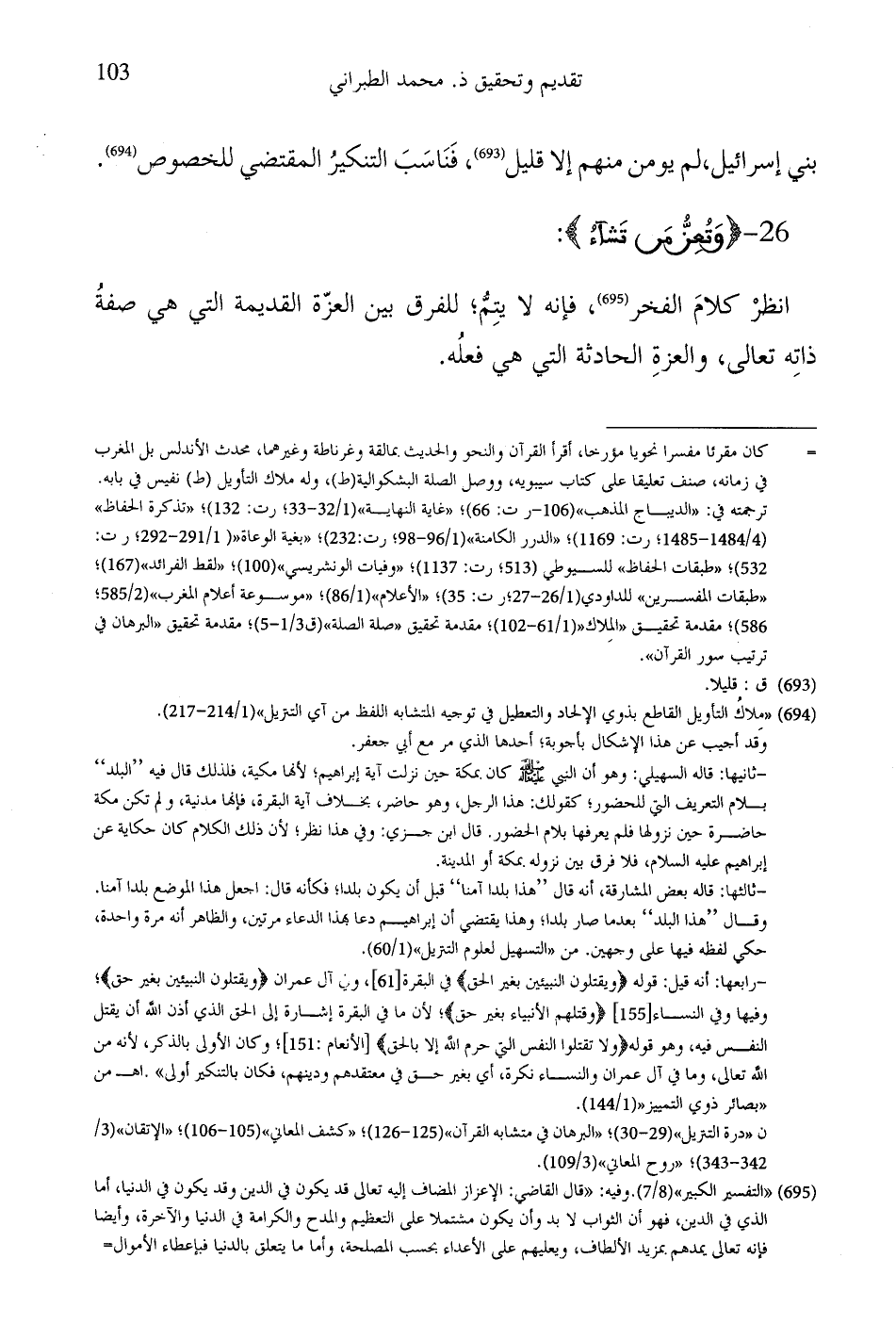 انظرْ كلامَ الفخر، فإنه لا يتِمُّ؛ للفرق بين العزّة القديمة التي هي صفةُ ذاتِه تعالى، والعزةِ الحادثة التي هي فعلُه.