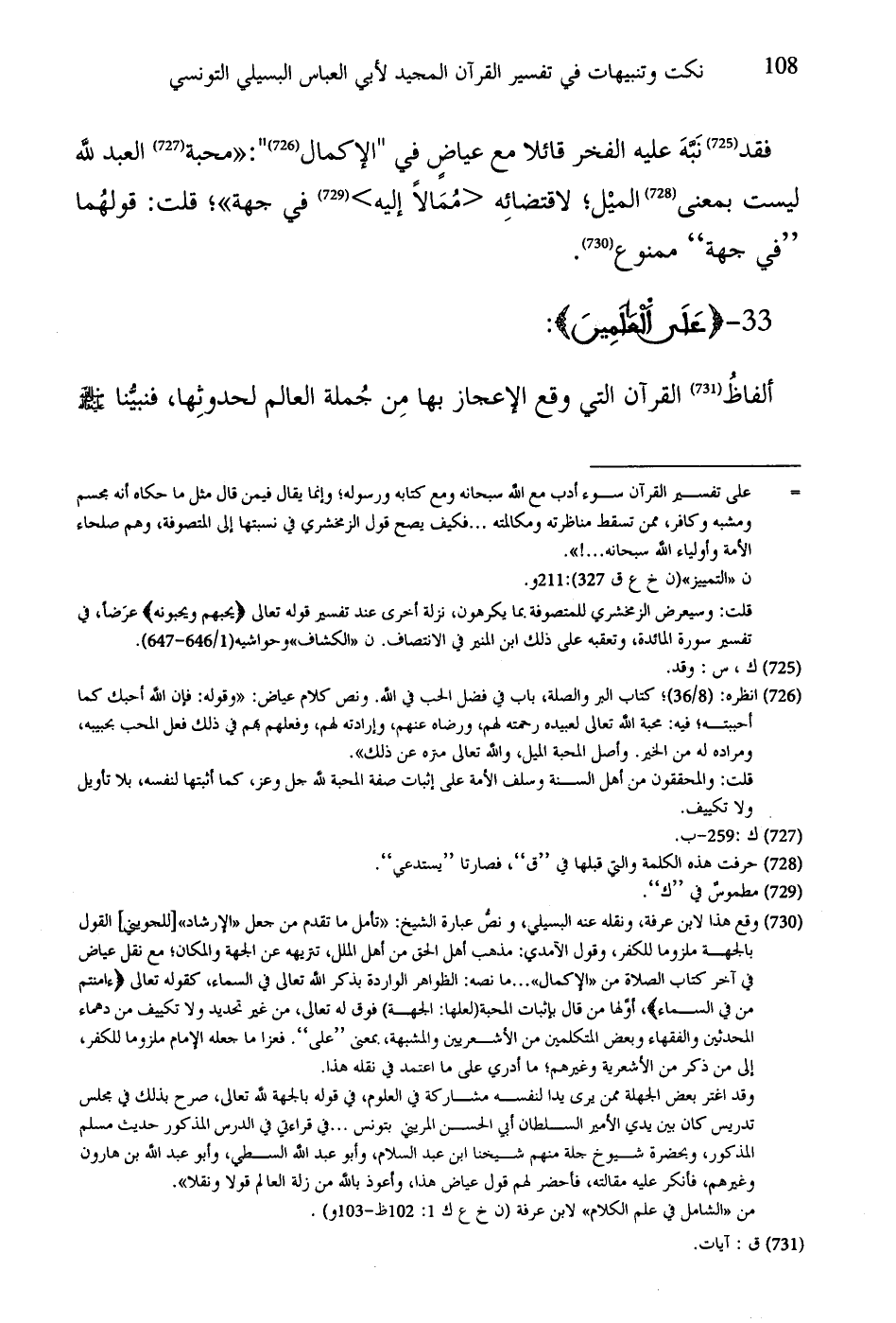 فقد نَبَّهَ عليه الفخر قائلا مع عياضٍ في "الإكمال": "محبة العبد للَّه ليست بمعنى الميْل؛ لاقتضائِه مُمَالاً إليه في جهة"؛ قلت: قولهُما "في جهة" ممنوع.