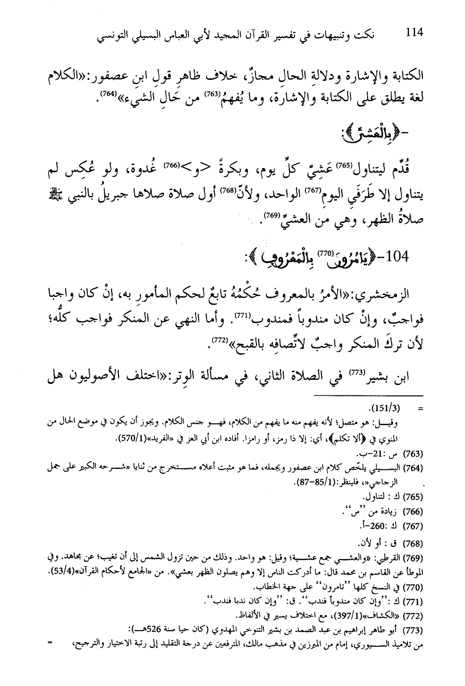 ابن بشير في الصلاة الثاني، في مسألة الوِتر: "اختلف الأصوليون هل