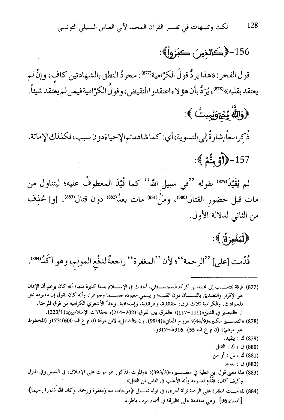 قول الفخر: "هذا يردُّ قولَ الكرامية: مجردُ النطق بالشهادتين كافٍ، وإنْ لم يعتقد بقلبه"، يُرَدُّ بأنَّ هؤلاء اعتقدوا النقيض، وقولُ الكرَّامية فيمن لم يعتقد شيئاً.