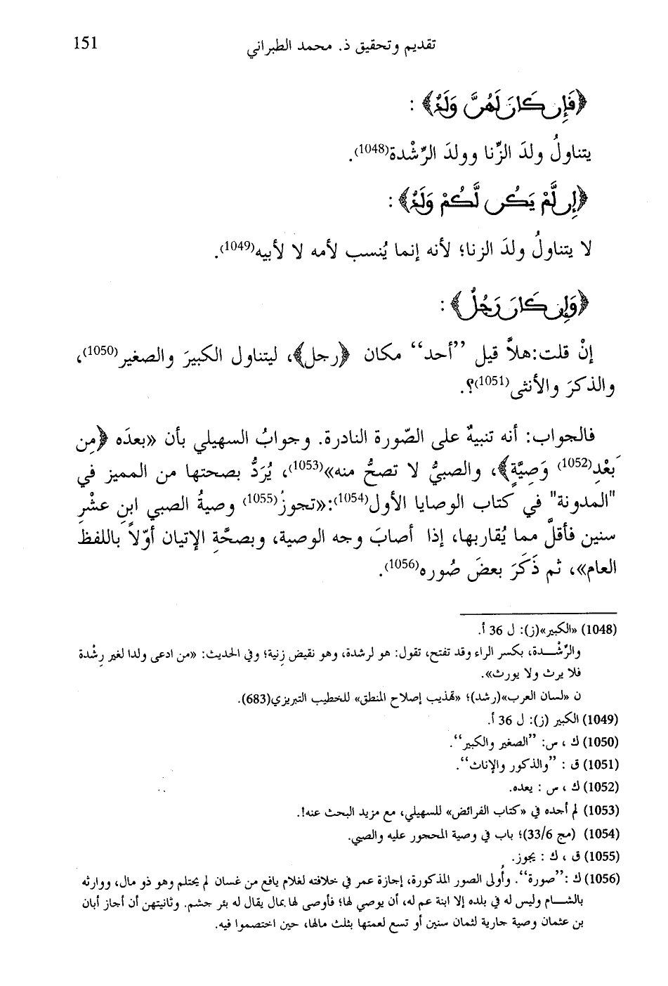 فالجواب: أنه تنبيهٌ على الصّورة النادرة. وجوابُ السهيلى بأن "بعدَه (مِن بَعْدِ وَصِية)، والصبيُّ لا تصحُّ منه"، يُرَدُّ بصحتها من المميز في "المدونة" في كتاب الوصايا الأول: "تجوز وصيةُ الصبي ابنِ عشْرِ سنين فأقل مما يُقاربها، إذا أصابَ وجه الوصية، وبصحَّةِ الإتيان أوّلاً باللفظ العام"، ثم ذَكَرَ بعضَ صُوره.