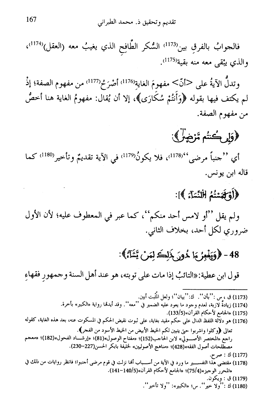 وتدلُّ الآيةُ على أنّ مفهومَ الغاية أصْرَحُ من مفهوم الصفة؛ إذْ لم يكتف فيها بقوله (وَأَنتُمْ سُكَارَى)، إلا أن يُقال: مفهومُ الغاية هنا أخصُّ من مفهوم الصفة.