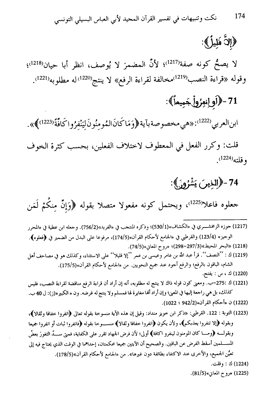 ابن العربي: "هي مخصوصة بآية (وَمَا كَانَ المُومِنُونَ لِيَنْفِرُوا كَافةً) ".