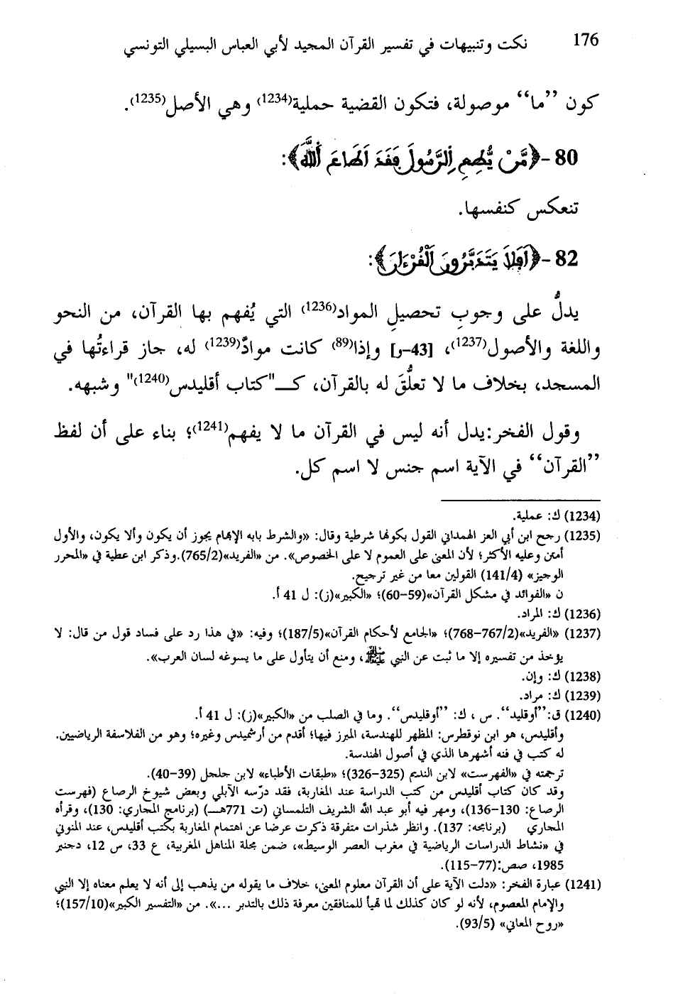 يدل على وجوب تحصيلِ المواد التي يُفهم بها القرآن، من النحو واللغة والأصول، وإذا كانت موادَّ له، جاز قراءتُها في المسجد، بخلاف ما لا تعلُّقَ له بالقرآن، كـ "كتاب أقليدس" وشبهه.