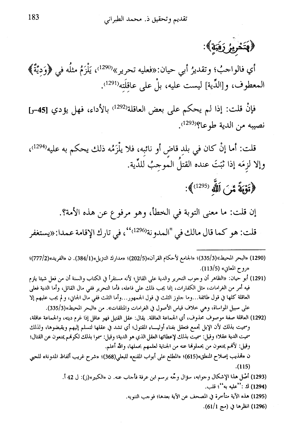 أي فالواجبُ؛ وتقديرُ أبي حيان: "فعليه تحرير"، يَلْزَمُ مثلُه في (وَدِيَّةٌ) المعطوف، والدِّية ليست عليه، بلْ على عاقِلَته.