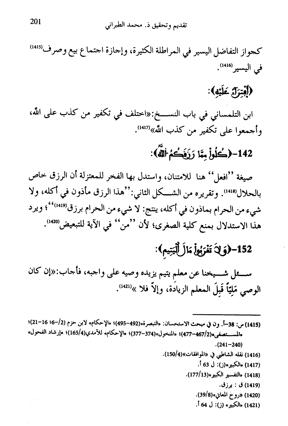 ابن التلمساني في باب النسخ: "اختلف في تكفير من كذب على الله، وأجمعوا على تكفير من كذب الله".
