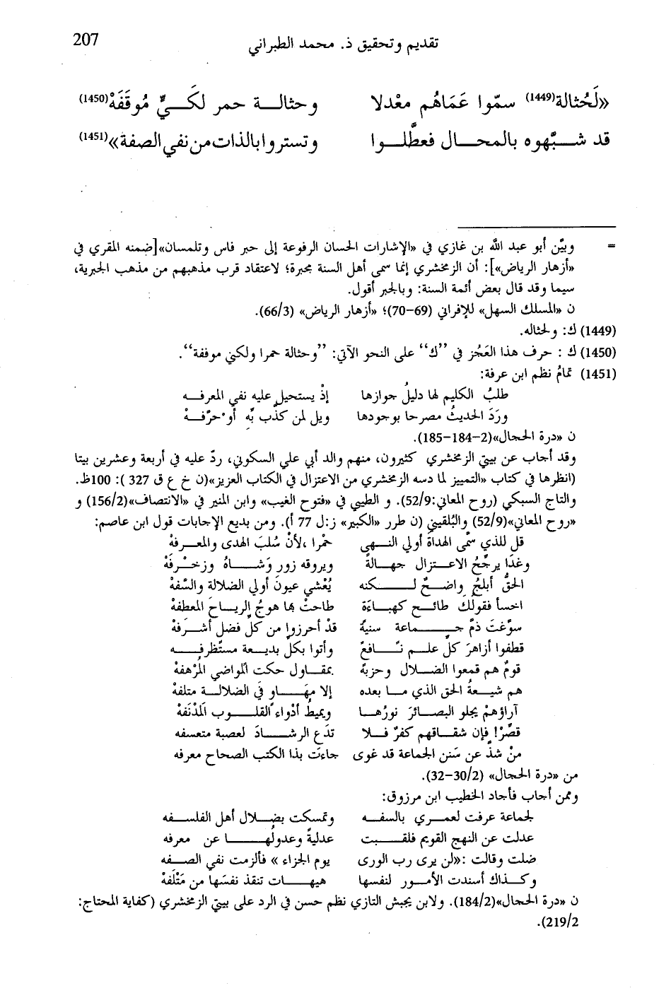 قد شبَّهوه بالمحال فعطَّلوا ... وتستروا بالذات من نفي الصفة"
