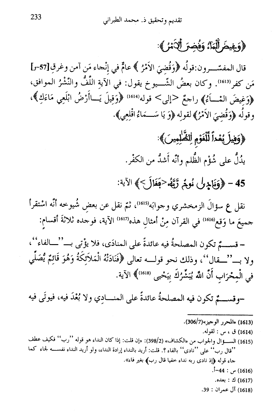 نقل ع سؤالَ الزمخشري وجوابَه، ثمّ نقل عن بعضِ شُيوخه أنه استقرأ جميعَ ما وَقع في القرآن مِنْ أمثالِ هذه الآية، فوجده ثلاثةَ أقسامٍ: