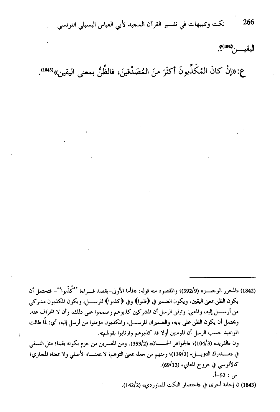 ع: "إنْ كانَ المُكَذِّبونَ أكثَرَ منَ المُصَدِّقينَ، فالظنُّ بمعنى اليقين".