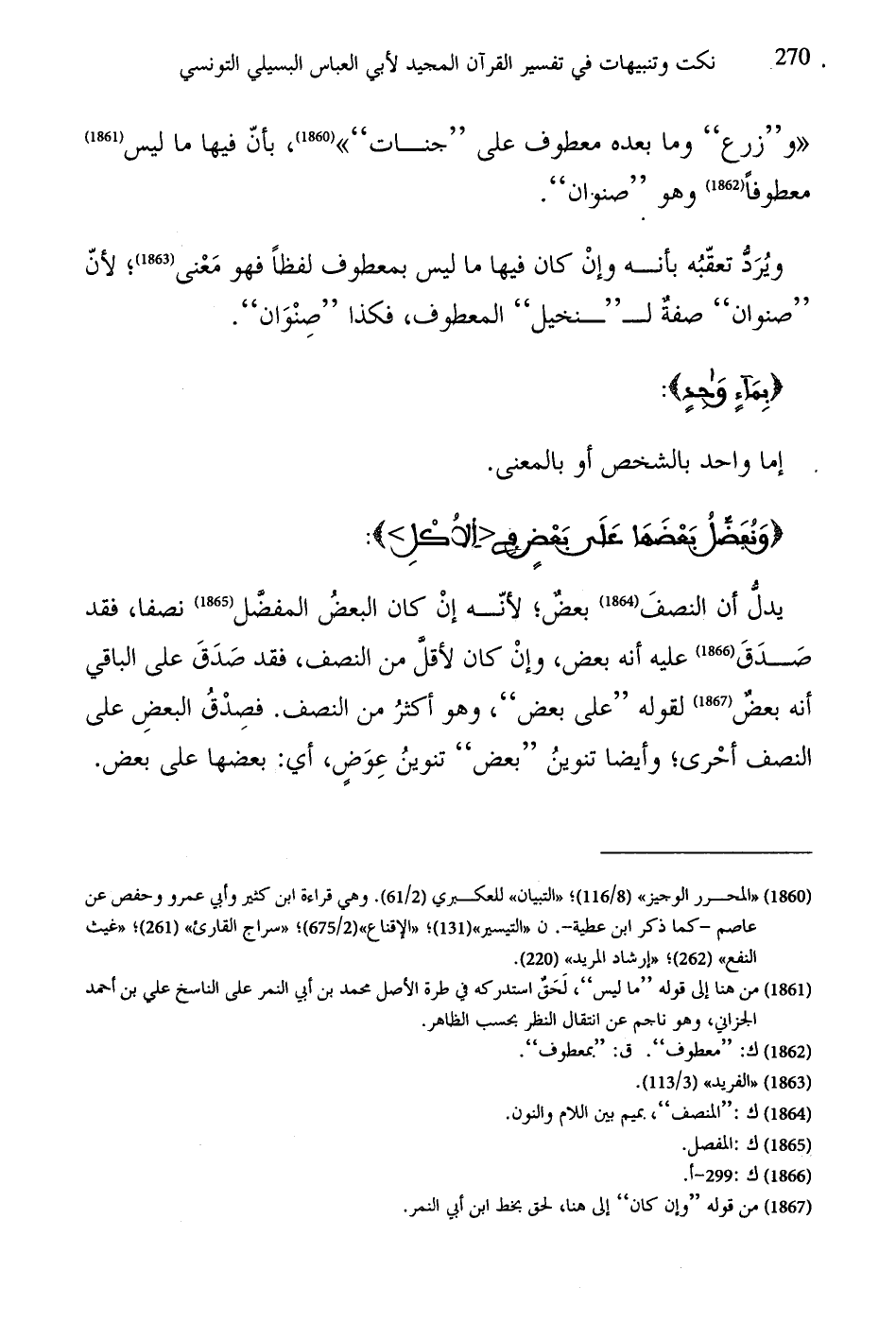 "و "زرع" وما بعده معطوف على "جنات"، بأنَّ فيها ما ليس معطوفاً وهو "صنوان".