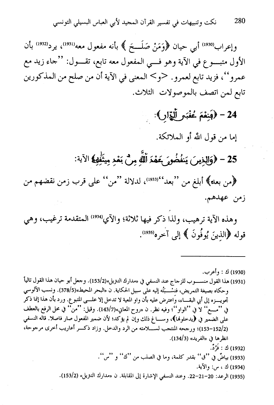 وإعراب أبي حيان (وَمَنْ صَلَحَ) بأنه مفعول معه، يرد بأن الأول متبوع في الآية وهو في المفعول معه تابع، تقول: "جاء زيد مع عمرو"، فزيد تابع لعمرو. والمعنى في الآية أن من صلح من المذكورين تابع لمن اتصف بالموصولات الثلاث.