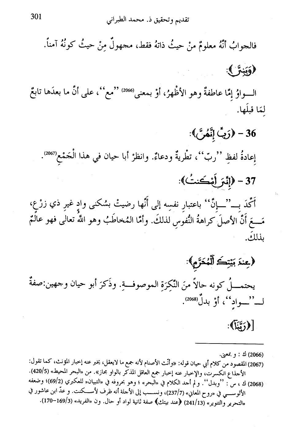 {عِنْدَ بَيْتِكَ الْمُحَرَّمِ}: