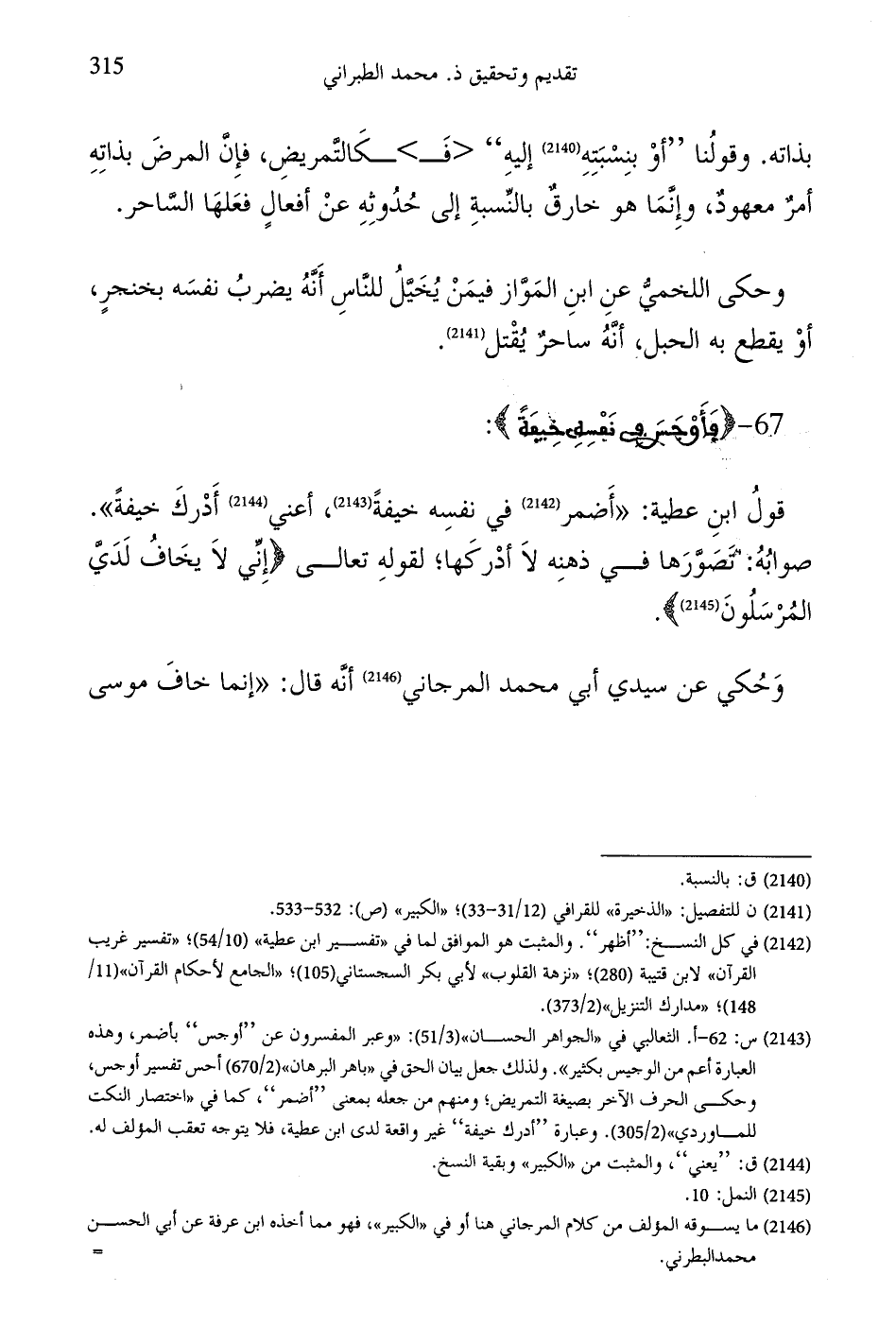 وَحُكي عن سيدي أبي محمد المرجاني أنَّه قال: "إنما خافَ موسى