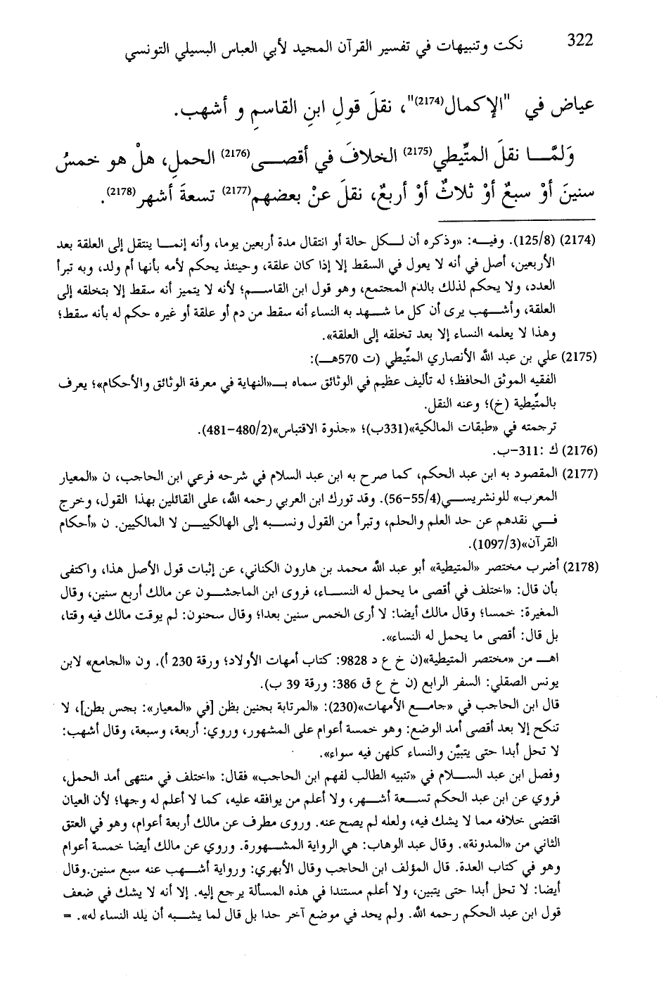 وَلما نقلَ المتِّيطي الخلافَ في أقصى الحملِ، هلْ هو خمسُ سنينَ أوْ سبعٌ أوْ ثلاث أوْ أربعٌ، نقلَ عنْ بعضهم تسعةَ أشهر.