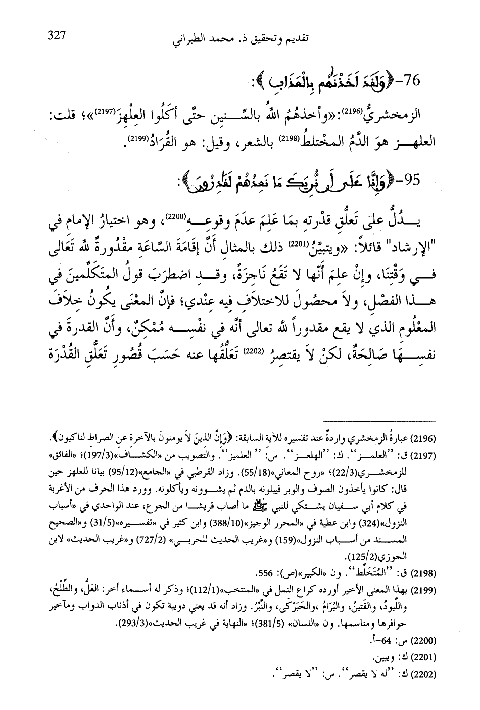 الزمخشريُّ: "وأخذهُمُ اللَّهُ بالسِّنيِن حتَّى أكَلُوا العِلْهِزَ"؛ قلت: العلهز هوَ الدَّمُ المخْتلطُ بالشعر، وقيل: هو القُرَادُ.