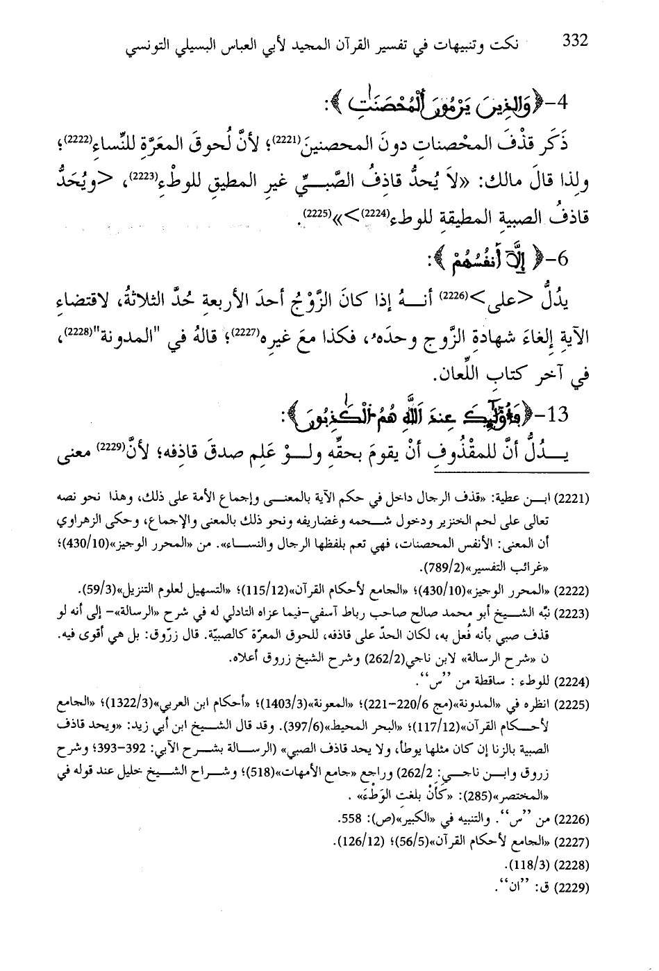 يدُلُّ على أنهُ إذا كانَ الزَّوْجُ أحدَ الأربعةِ حُدَّ الثلاثةُ، لاقتضاءِ الآيةِ إِلغاءَ شهادةِ الزوج وحدَه، فكذا معَ غيرِه؛ قالهُ في "المدونة"، في آخر كتاب اللِّعان.