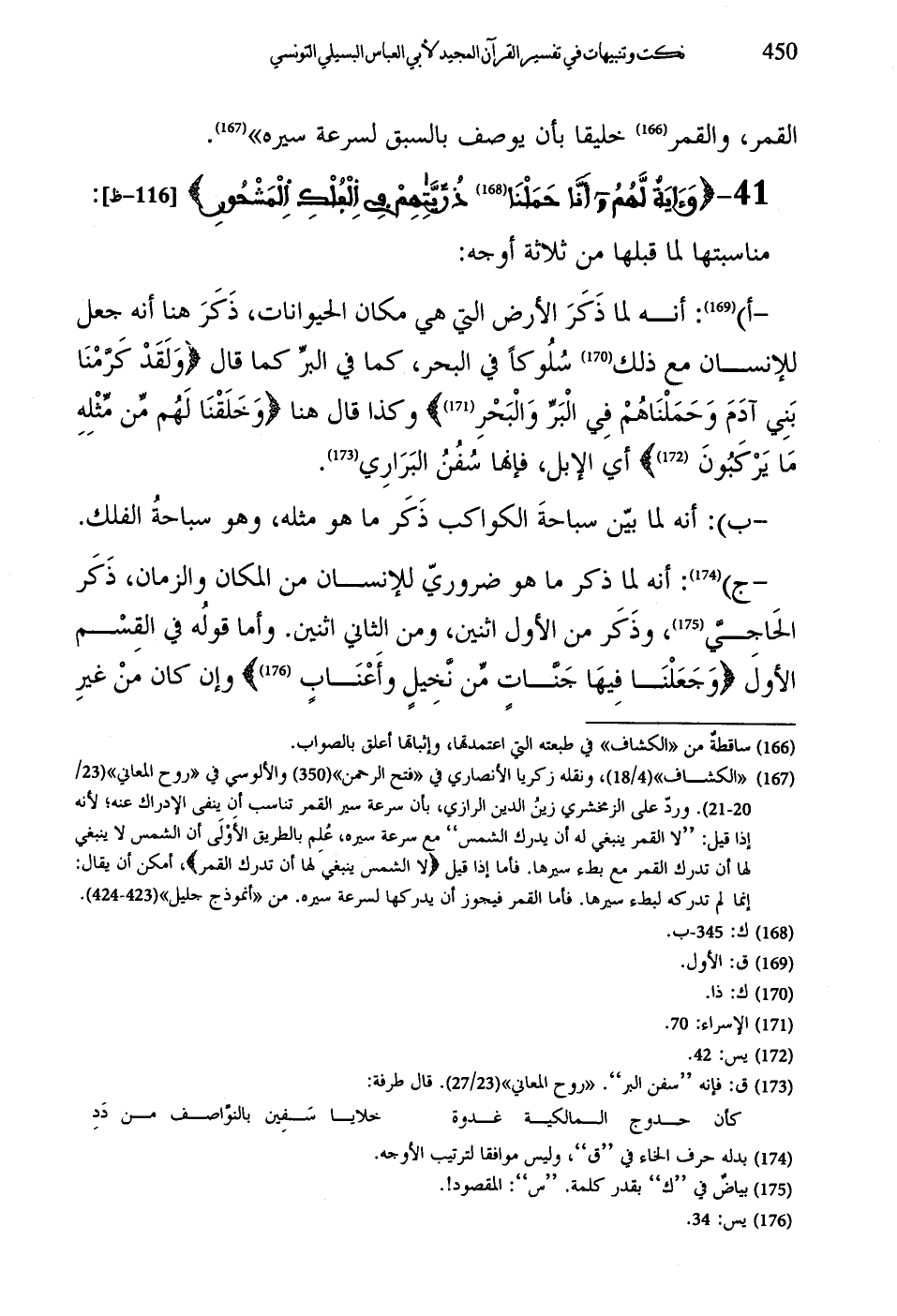 (ب): أنه لما بيّن سباحةَ الكواكب ذَكَر ما هو مثله، وهو سباحةُ الفلك.