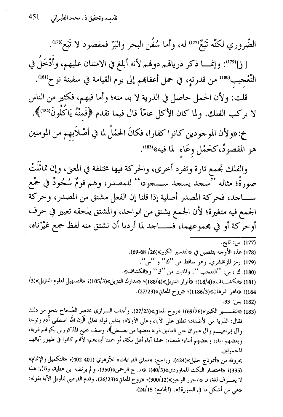 خ: "ولأن الموجودين كانوا كفارا، فكانَ الحمْلُ لما في أصْلاَبِهِم من المومنين هو المقصود، كحَمْل وِعَاءٍ لما فيه".