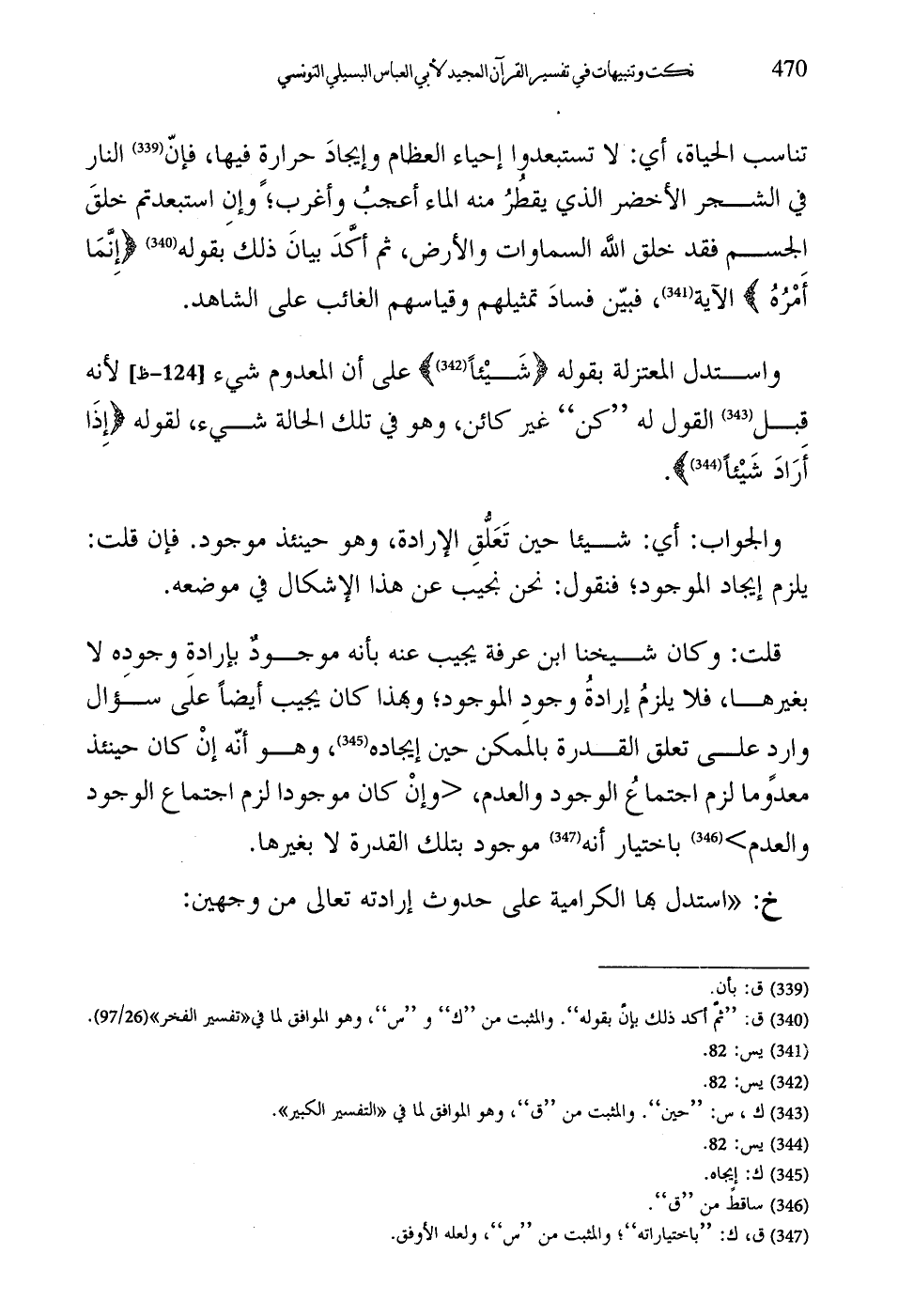 قلت: وكان شيخنا ابن عرفة يجيب عنه بأنه موجودٌ بإرادة وجوده لا بغيرها، فلا يلزمُ إرادةُ وجود الموجود؛ وبهذا كان يجيب أيضاً على سؤال واردٍ على تعلق القدرة بالممكن حين إيجاده، وهو أنّه إنْ كان حينئذ معدوما لزم اجتماعُ الوجود والعدم، وإنْ كان موجودا لزم اجتماع الوجود والعدم باختيار أنه موجود بتلك القدرة لا بغيرها.