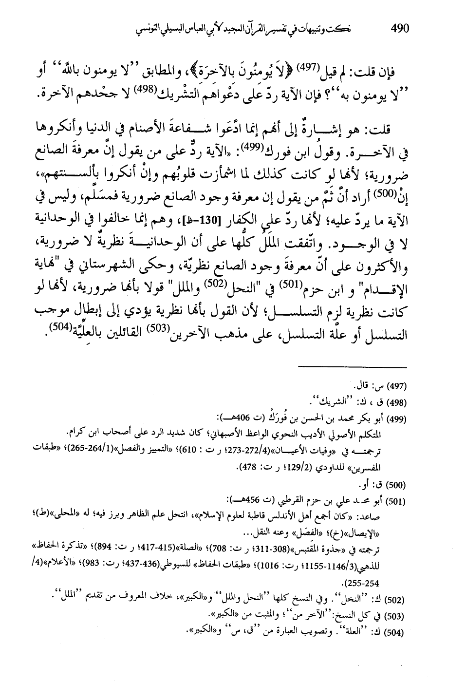 قلت: هو إشارةٌ إلى أنَّهُم إنما ادَّعَوا شفاعةَ الأصنام في الدنيا وأنكروها في الآخرة. وقولُ ابن فورك: "الآية ردٌّ على من يقول إنَّ معرفةَ الصانع ضرورية؛ لأنها لِو كانت كذلك لما اشمأزت قلوبُهم وإنْ أنكروا بألسنتهم"، إنْ أراد أنَّ ثَمَّ من يقول إن معرفة وجود الصانع ضرورية فمسَلَّم، وليس في الآية ما يردّ عليه؛ لأنها ردّ علِي الكفار، وهم إنما خالفوا في الوحدانية لا في الوجود. واتّفقت الملل كلُّها على أن الوحدانيةَ نظريةٌ لا ضرورية، والأكثرون على أنّ معرفةَ وجود الصانع نظريّة، وحكى الشهرستاني في "نهاية الإقدام" وابن حزم في "النحل والملل" قولا بأنها ضرورية، لأنها لو كانت نظرية لزم التسلسل؛ لأن القول بأنها نظرية يؤدي إلى إبطال موجب التسلسل أو علَّة التسلسل، على مذهب الآخرين القائلين بالعِلِّيَّة.