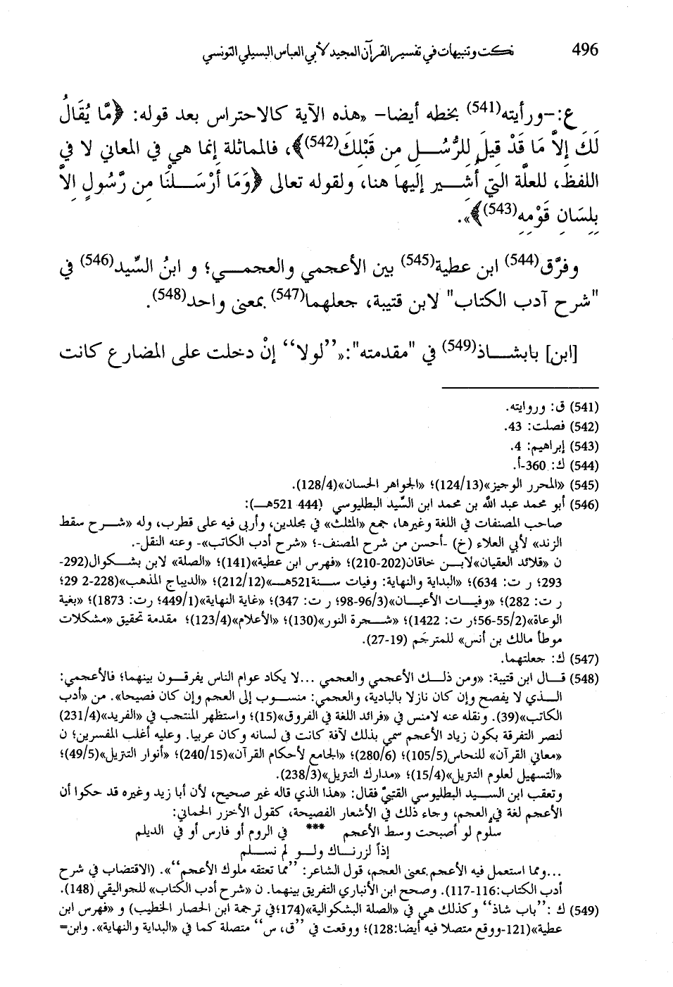ع: -ورأيته بخطه أيضا-، هذه الآية كالاحتراس بعد قوله: (مَا يُقَالُ لَكَ إِلَّا مَا قَدْ قِيلَ لِلرُّسُلِ مِنْ قَبْلِكَ)، فالمماثلة إِنما هي في المعاني لا في اللفظ، للعلة التَي أشِير إليهاَ هنا،َ ولقوله تعالى (وَمَا أَرْسَلْنَا مِنْ رَسُولٍ إِلَّا بِلِسَانِ قَوْمِهِ).