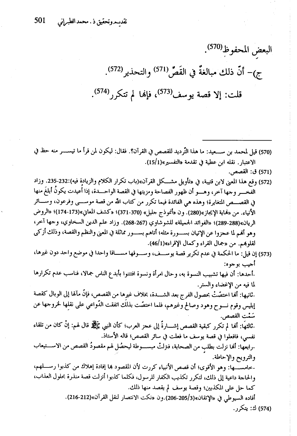 قلت: إلا قصة يوسف، فإنها لم تتكرر.