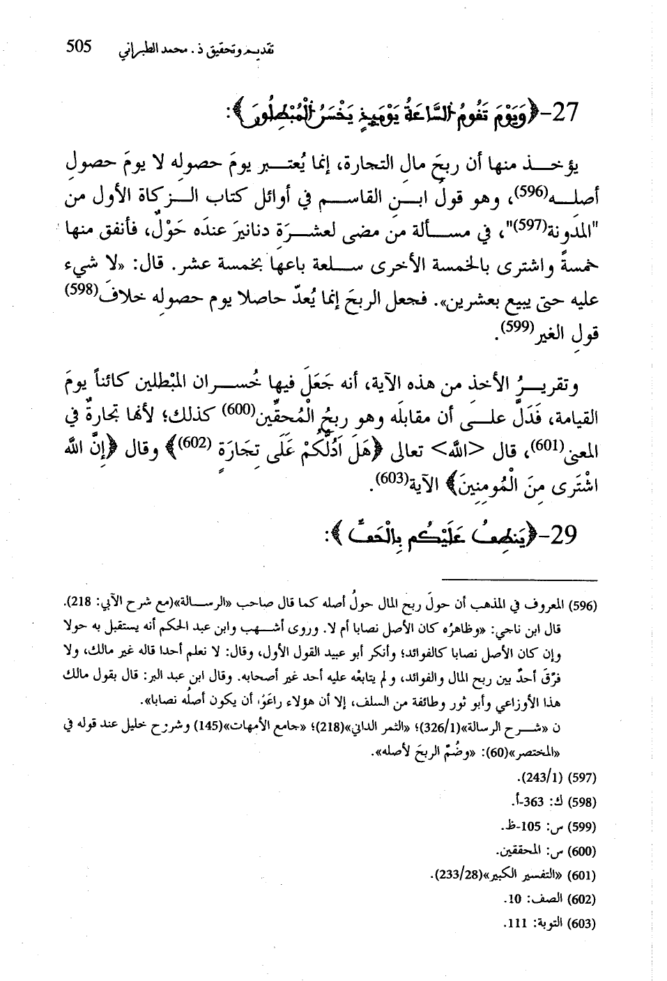 وتقرير الأخذ من هذه الآية، أنه جَعَلَ فيها خُسران المبْطلين كائناً يومَ القيامة، فَدَلَّ عليَ أن مقابلَه وهوِ ربحُ الْمُحقِّين كذلك؛ لأنَّها تجارةٌ في المعنى، قال الله تعالى (هَل اَدُلكمْ عَلَى تجَارَة) وقال (إن اللَّهَ اشْتَرى مِنَ الْمُومِنِينَ) الآية.
