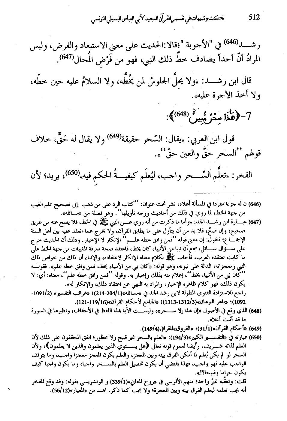 الفخر: "تعلُّم السِّحر واجب، ليُعلَم كيفيةُ الحكمِ فيه"، يريد؛ لأن