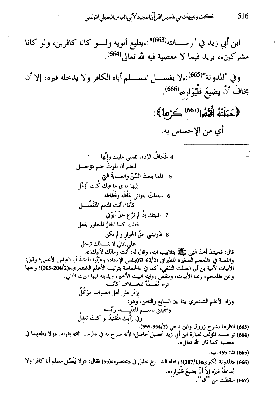 ابن أبي زيد في "رسالته": "ويطيع أبويه ولو كانا كافرين، ولو كانا مشركين"، يريد فيما لا معصية فيه لله تعالى.