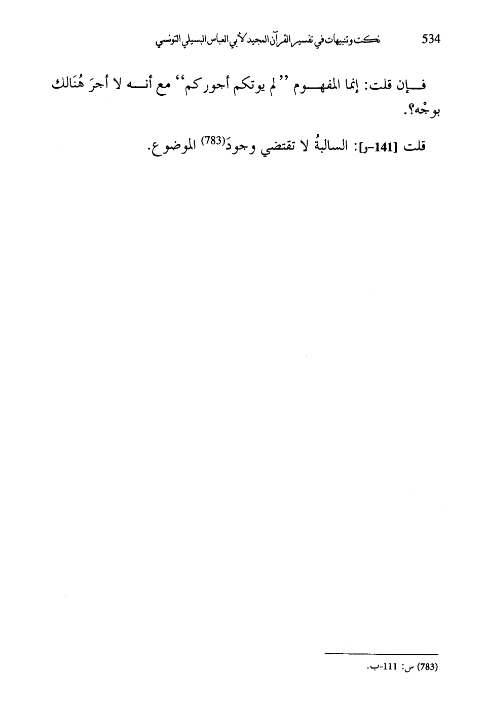 فإن قلت: إنما المفهوم "لم يوتكم أجوركم" مع أنه لا أجرَ هُنَالك بوجْه؟.