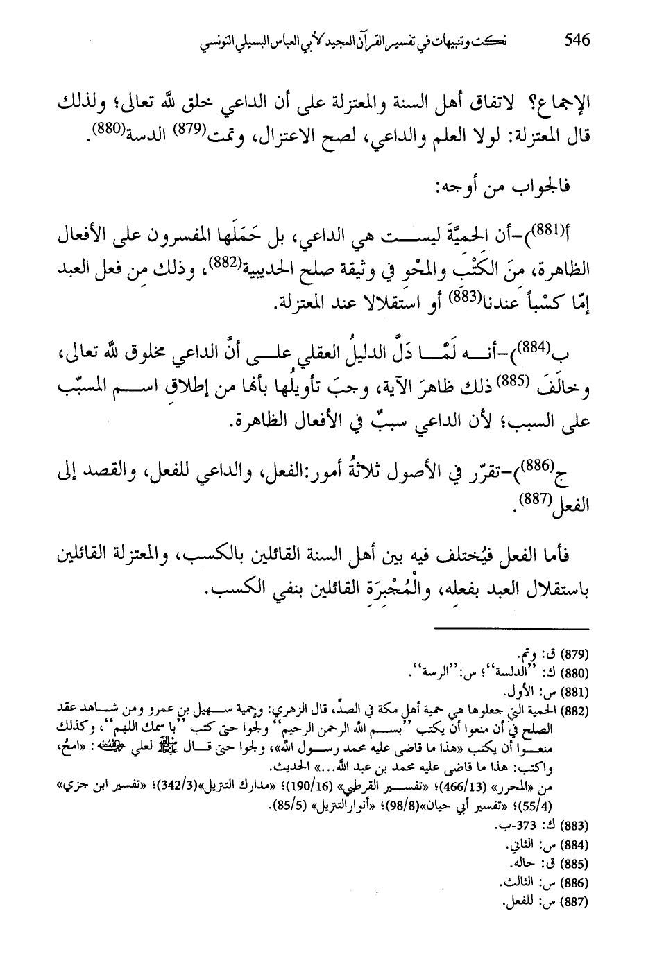 فأما الفعل فيُختلف فيه بين أهل السنة القائلين بالكسب، والمعتزلة القائلين باستقلال العبد بفعلِه، والْمُجْبِرَةِ القائلين بنفي الكسب.