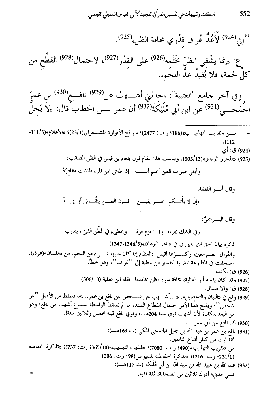 وفي آخر جامع "العتبية": "حدثني أشهبُ عن نافع بن عمرَ الجُمَحي عن ابن أبي مُلَيْكَةَ أن عمر بن الخطاب قال: "لاَ يَحِلُّ