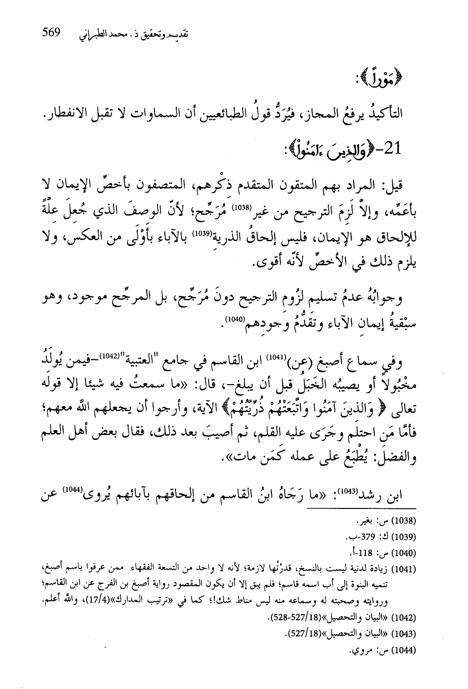 ابن رشد: "ما رَجَاهُ ابنُ القاسم من إلحاقهم بآبائهم يُروى عن