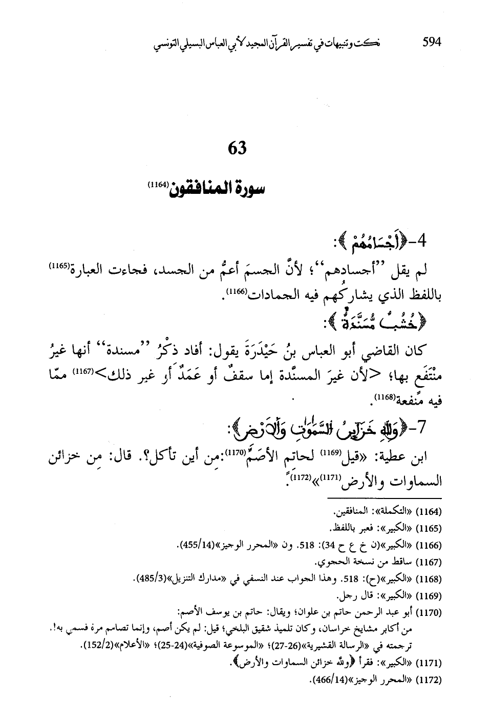 كان القاضي أبو العباس بنُ حَيْدَرَةَ يقول: أفاد ذكْرُ "مسندة" أنها غيرُ منْتَفَعٍ بها؛ لأن غيرَ المسنَّدة إما سقفٌ أو عَمَدٌَ أو غير ذلك ممّا فيه منفعة.