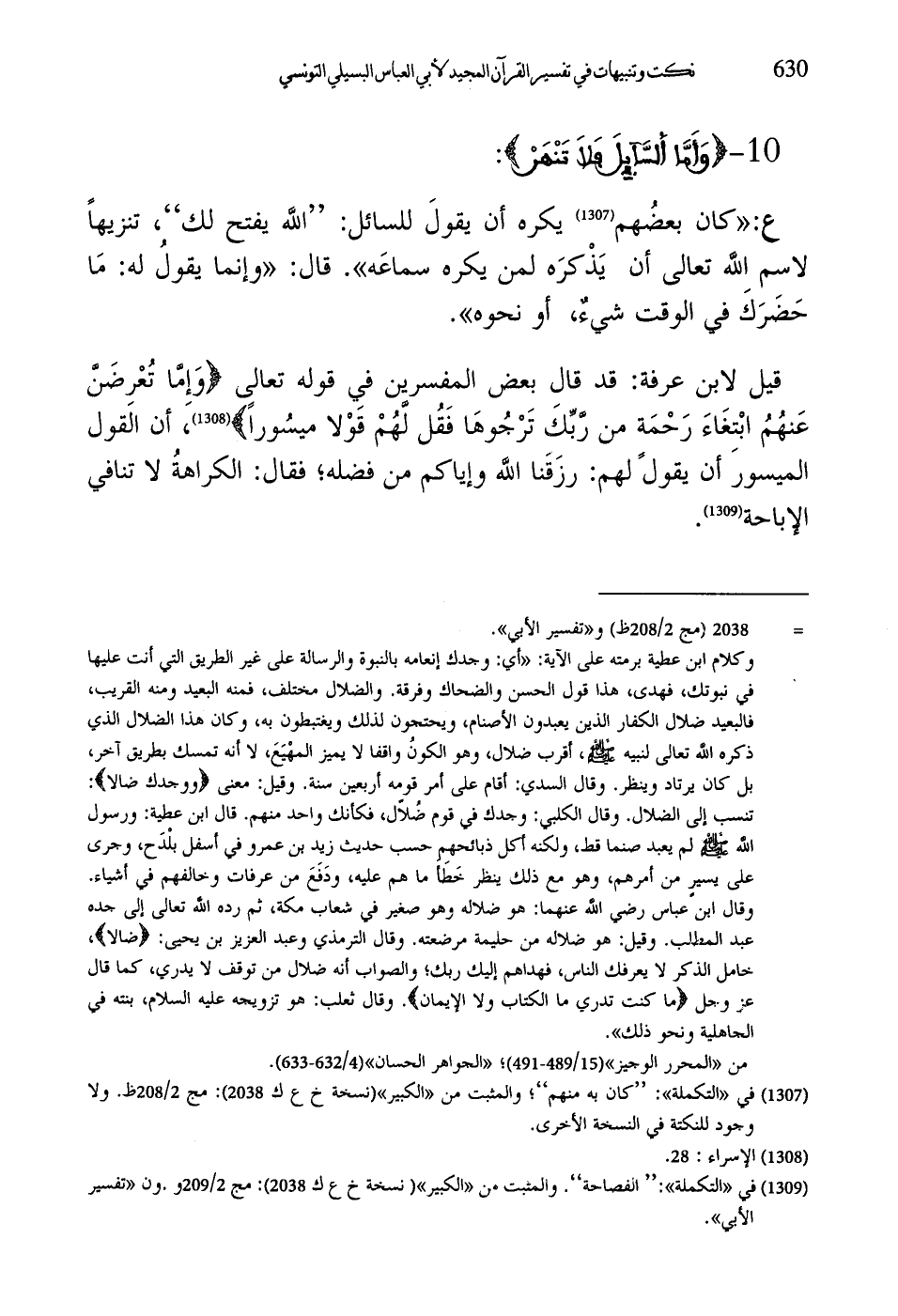 قيل لابن عرفة: قد قال بعض المفسرين في قوله تعالى (وَإِمَّا تُعْرِضَنَّ عَنْهُمُ ابْتِغَاءَ رَحْمَةٍ مِنْ رَبِّكَ تَرْجُوهَا فَقُلْ لَهُمْ قَوْلًا مَيْسُورًا)، أن القول الميسور أن يقول لهم: رزَقَنا اللَّه وإياكم من فضله، فقال: الكراهةُ لا تنافي الإباحة.