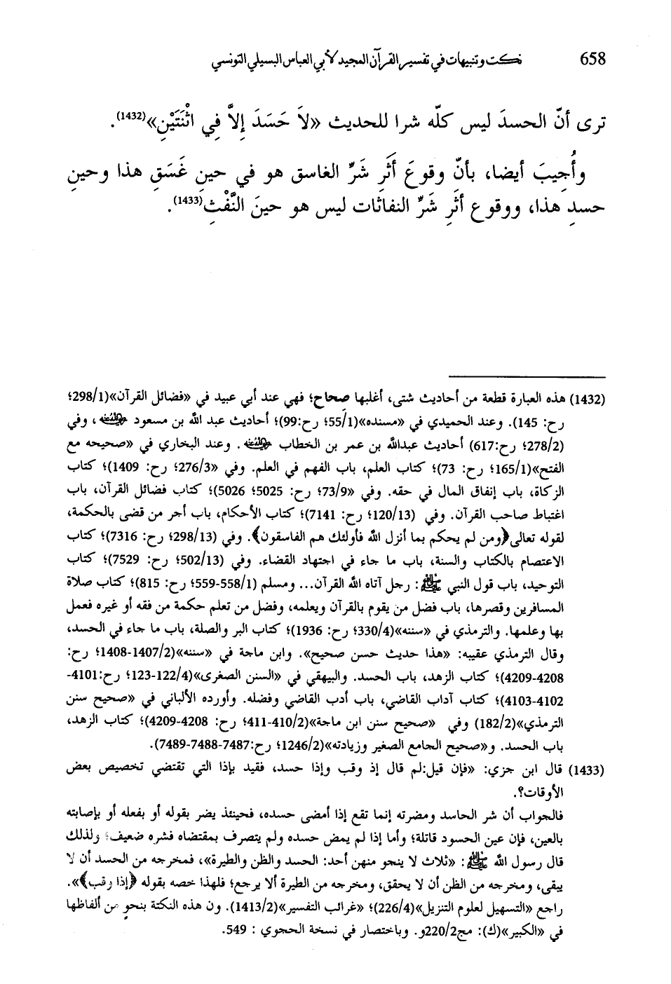 ترى أن الحسدَ ليس كلّه شرا للحديث "لاَ حَسَدَ إِلَّا فِي اثْنَتَيْنِ".