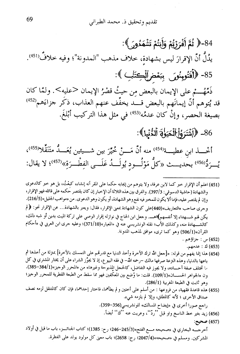 85 - {أَفَتُؤْمِنُونَ بِبَعْضِ الْكِتَابِ وَتَكْفُرُونَ بِبَعْضٍ}: