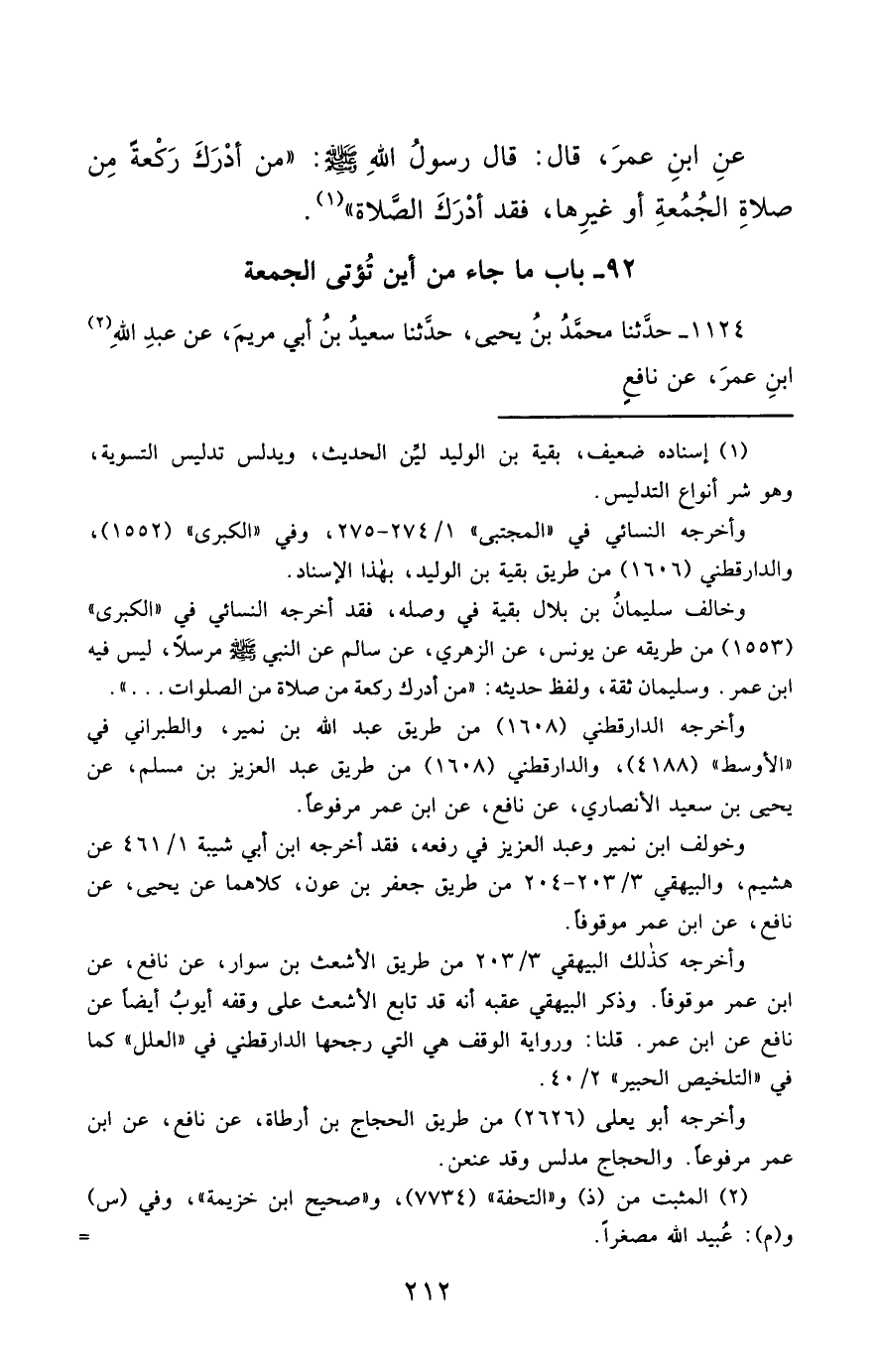 1124- حَدَّثَنَا مُحَمَّدُ بْنُ يَحْيَى ، حَدَّثَنَا سَعِيدُ بْنُ أَبِي مَرْيَمَ ، عَنْ عَبْدِ اللهِ بْنِ عُمَرَ ، عَنْ نَافِعٍ ، عَنِ ابْنِ عُمَرَ ، قَالَ : إِنَّ أَهْلَ قُبَاءٍ كَانُوا يُجَمِّعُونَ مَعَ رَسُولِ اللهِ صَلَّى الله عَليْهِ وسَلَّمَ يَوْمَ الْجُمُعَةِ.