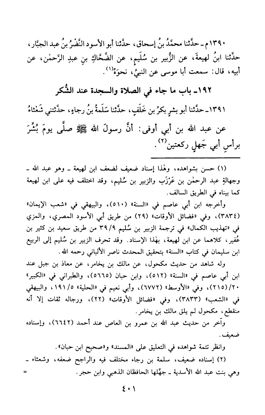 192- بَابُ مَا جَاءَ فِي الصَّلاَةِ وَالسَّجْدَةِ عِنْدَ الشُّكْرِ