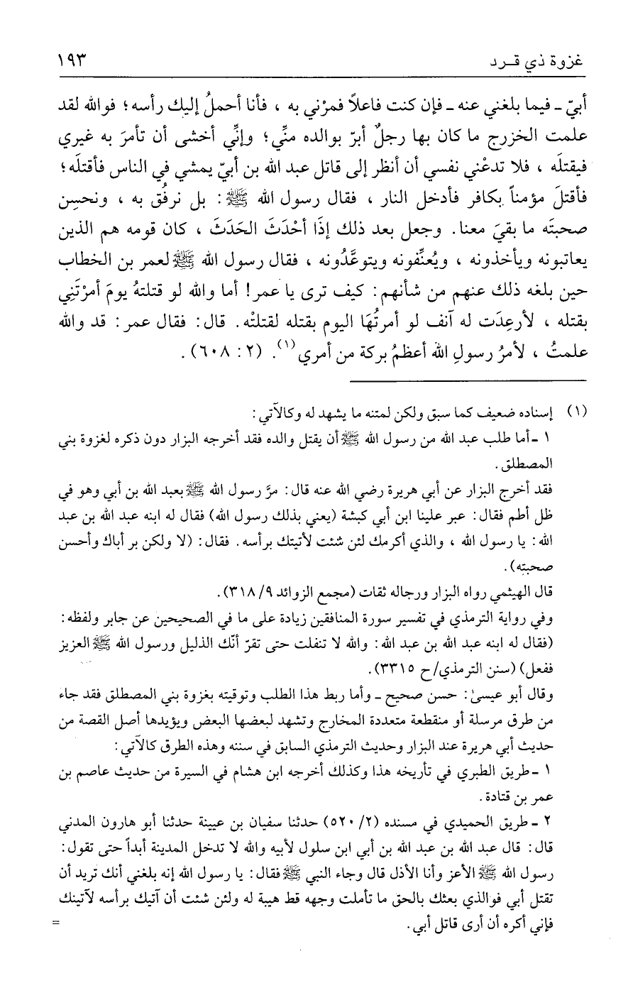 ١ - أما طلب عبد الله من رسول - صلى الله عليه وسلم - أن يقتل والده فقد أخرجه البزار دون ذكره لغزوة بني المصطلق.