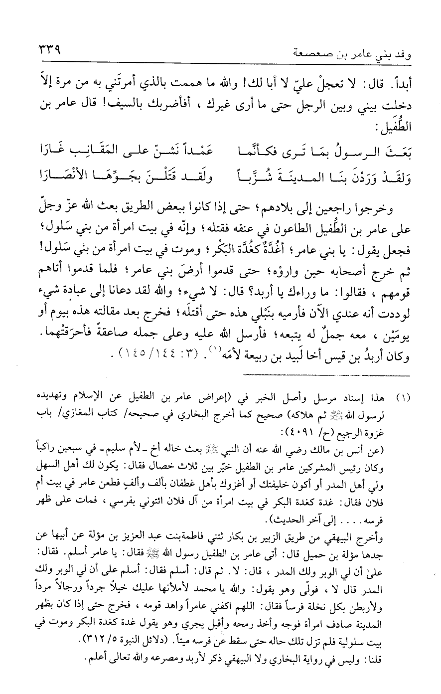 (١) هذا إسناد مرسل وأصل الخبر في (إعراض عامر بن الطفيل عن الإسلام وتهديده لرسول الله - صلى الله عليه وسلم - ثم هلاكه) صحيح كما أخرج البخاري في صحيحه / كتاب المغازي / باب غزوة الرجيع (ح / ٤٠٩١):