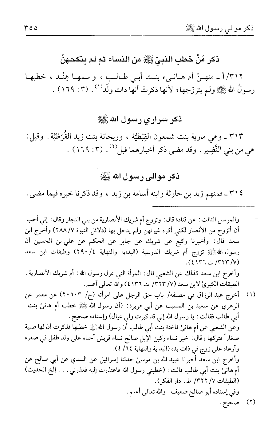 ٣١٣ - وهي مارية بنت شمعون القِبْطيَّة، وريحانة بنت زيد القُرَظيَّة. وقيل: هي من بني النَّضِير. وقد مضى ذكر أخبارهما قبل (٢). (٣: ١٦٩).