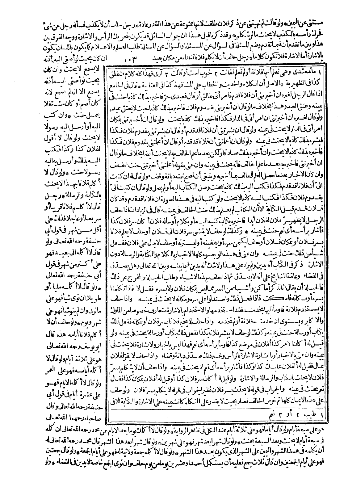 كَذَا أَفُلَانٌ فِي مَوْضِعِ كَذَا فَأَوْمَأَ بِرَأْسِهِ أَيْ نَعَمْ فَهَذَا لَيْسَ بِأَخْبَارٍ، وَلَا بِشَارَةٍ فَلَا يَحْنَثُ فِي يَمِينِهِ وَإِنْ عَنَى بِالْإِخْبَارِ أَوْ بِالْبِشَارَةِ الْإِشَارَةَ بِالرَّأْسِ، وَغَيْرَ ذَلِكَ صُدِّقَ دِيَانَةً، وَقَضَاءً إذَا حَلَفَ لَا يُقِرُّ لِفُلَانٍ بِمَالٍ فَقِيلَ لَهُ: أَلِفُلَانٍ عَلَيْك كَذَا، وَكَذَا فَأَشَارَ بِرَأْسِهِ أَيْ نَعَمْ لَا يَحْنَثُ فِي يَمِينِهِ، وَإِذَا حَلَفَ أَنْ لَا يَتَكَلَّمَ بِسِرِّ فُلَانٍ لَا يَحْنَثُ بِالْكِتَابِ، وَالرِّسَالَةِ، وَالْإِشَارَةِ، وَلَوْ قِيلَ لَهُ: أَكَانَ سِرُّ فُلَانٍ كَذَا، أَوْ قِيلَ لَهُ: أَفُلَانٌ بِمَكَانِ، كَذَا فَقَالَ: نَعَمْ حَنِثَ فِي يَمِينِهِ الْجَوَابُ فِي قَوْلِهِ لَا يُحَدِّثُ بِسِرِّ فُلَانٍ نَظِيرُ الْجَوَابِ فِي قَوْلِهِ لَا يَتَكَلَّمُ بِسِرِّ فُلَانٍ، وَلَوْ حَلَفَ عَلَى هَذَا الْأَيْمَانِ كُلِّهَا ثُمَّ خَرِسَ الْحَالِفُ فَصَارَ بِحَيْثُ لَا يَقْدِرُ عَلَى التَّكَلُّمِ كَانَتْ يَمِينُهُ عَلَى الْإِشَارَةِ، وَالْكِتَابَةِ إلَّا فِي