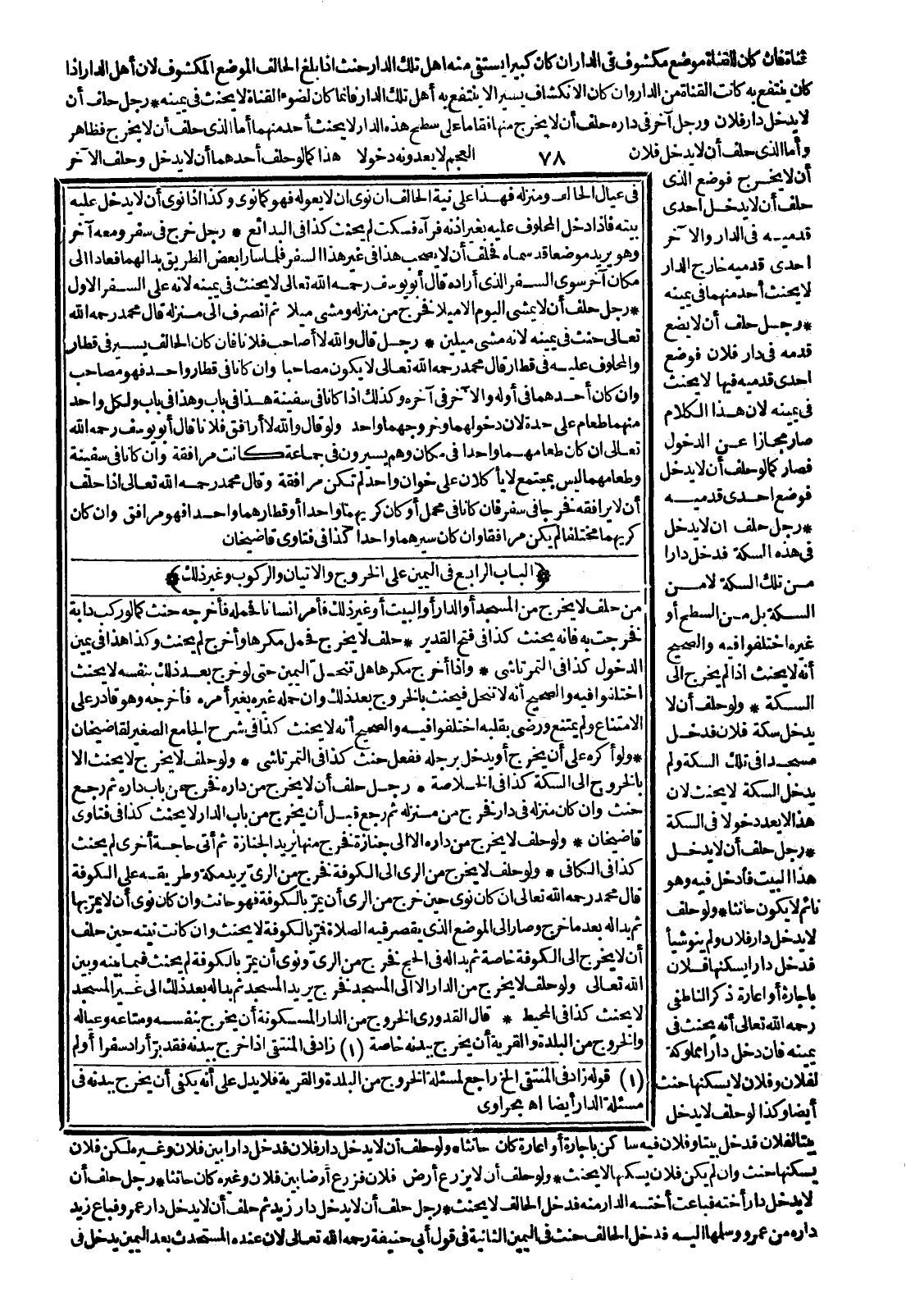 رَجُلٌ حَلَفَ أَنْ لَا يَخْرُجَ مِنْ دَارِهِ فَخَرَجَ مِنْ بَابِ دَارِهِ ثُمَّ رَجَعَ حَنِثَ وَإِنْ كَانَ مَنْزِلُهُ فِي دَارٍ فَخَرَجَ مِنْ مَنْزِلِهِ ثُمَّ رَجَعَ قَبْلَ أَنْ يَخْرُجَ مِنْ بَابِ الدَّارِ لَا يَحْنَثُ كَذَا فِي فَتَاوَى قَاضِي خَانْ.