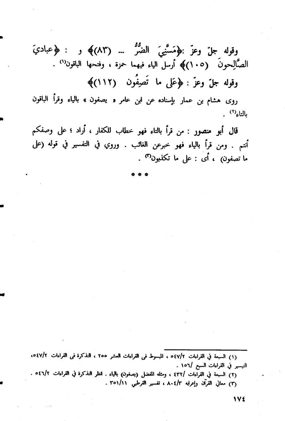 روى هشام بن عمار بإسناده عن ابن عامر (يصفون) بالياء